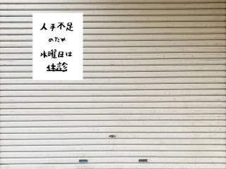 〇人手不足による休診日のおしらせスタッフ不足のため、しばらくの間「毎週水曜日は休診」とさせていただきます。